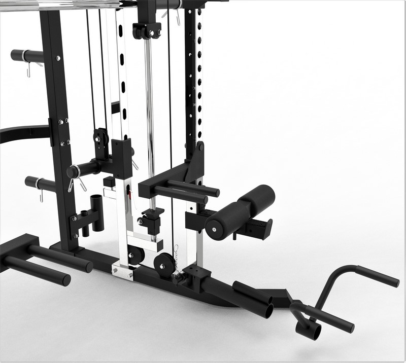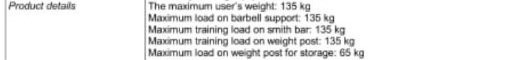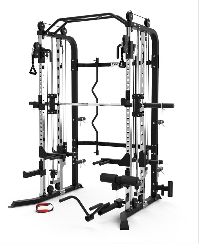 PESO MASSIMO UTILIZZATORE 135 Kg PULLEY regolabile 339-1839 mm su 21 livelli interasse 75 mm J-CUP/SAFETY SPOTTER ARMS Extra strong spessore 5 mm con protezione UHMW (Ultra High Molecular Weight). Regolabile 314-1814 mm su 31 livelli interasse 50 mm DIMENSIONE PRODOTTO 1990x1500x2200 mm STRUTTURA TUBOLARE a sezione rettangolare 50x70 mm - spessore 2 mm e quadrata 50x50 mm - spessore 2 mm BILANCIERE 1980 mm, scorrimento su cuscinetti a sfera, 2 sicurezze con gancio regolabile, regolabili su 12 posizioni (523 - 1733 mm), passo110 mm. Diametro porta dischi da 50 mm e da 25 mm DOTAZIONI/NOTE 3-IN-1 dual pulley, smith machine, rack. 2 J-hook, coppia fermi di sicurezza bilanciere con rulli gambe in foam, barra trazioni, parallele, porta bilanciere, 4 porta dischi ø50 mm e 25 mm, 10 ferma dischi a molla ø49 mm, 10 ferma dischi a mola ø47 mm. Attachments : cavigliera, landmine, 2 maniglie trazioni, bilanciere curl. PESO PRODOTTO 139,5 kg (imballato 152 kg)