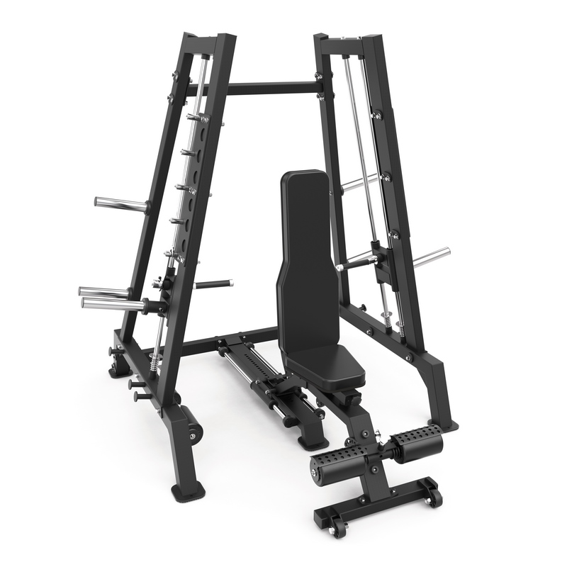 Dotazioni/note: 4 perni porta dischi ø50 mm., 3 ganci per fasce elastiche, 2 ruote di trasporto. Rulli gambe superiori rimovibili per un accesso più confortevole. Panca inclinata, piana, declinata.