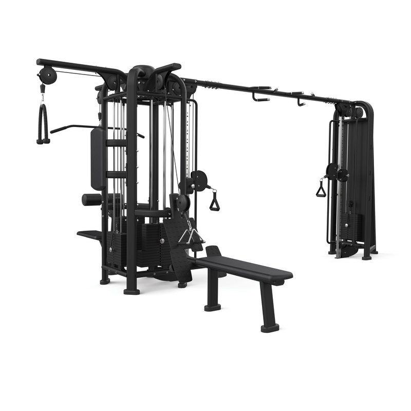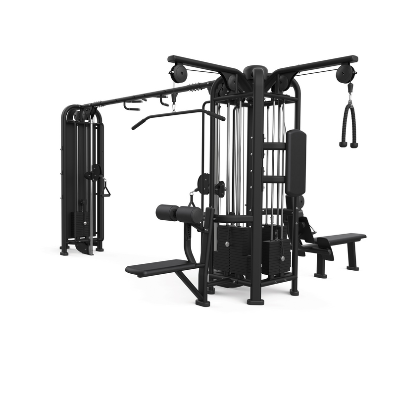 - Pacco pesi in acciaio: cable crossover 2x70 kg, lat machine 95 kg, pulley 102,5 kg, triceps 60 kg.