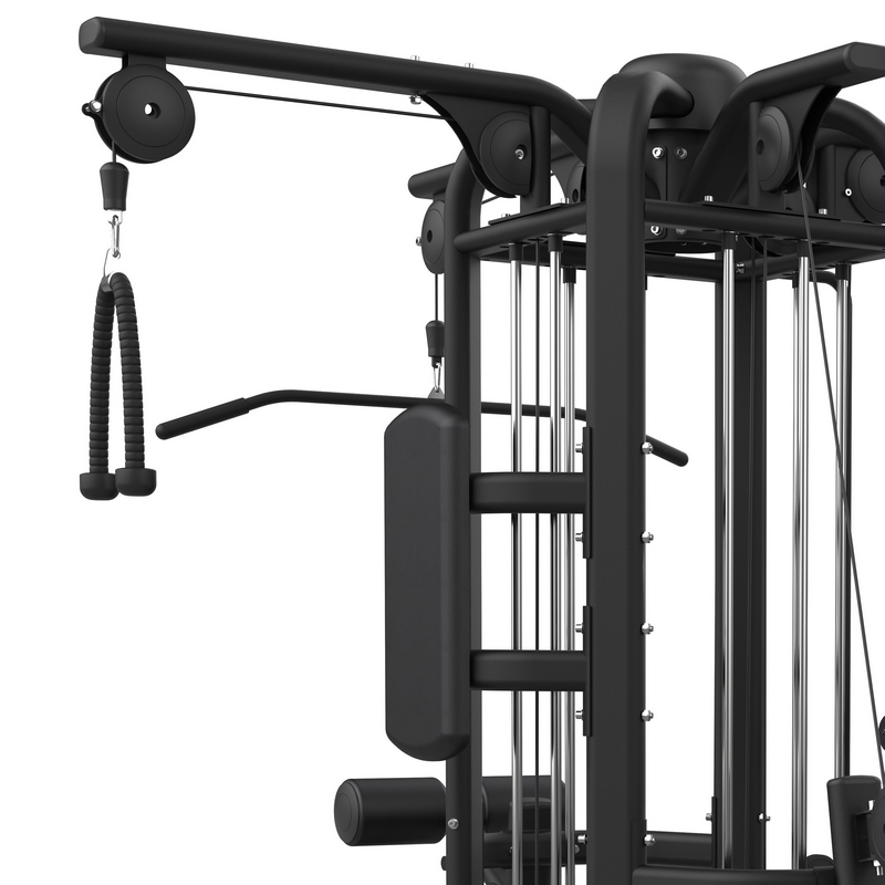 - Dotazione 2 maniglie pulley, lat bar, corda doppia per tricipiti, maniglia doppia