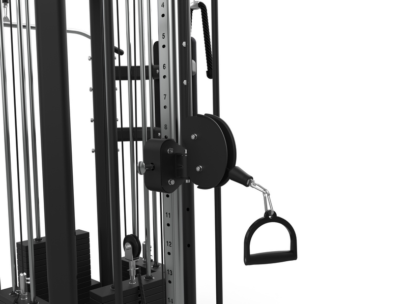 Dotazione: maniglia di trazione, barre lat, 2 corda doppia per tricipiti, barra corta, maniglia pulley, maniglia doppia