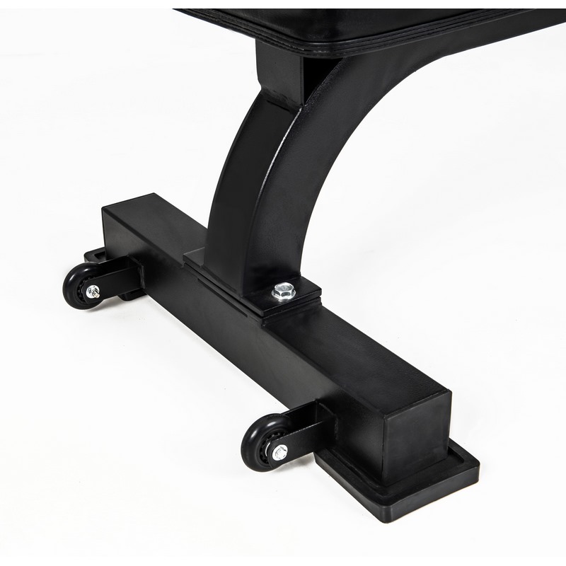 Panca piana a marchio Toorx robusta e stabile, indicata per uso intensivo in quanto certificata in classe S, grazie alla sua particolare robustezza oltre che alla dotazione di maniglia e ruote di trasporto.
