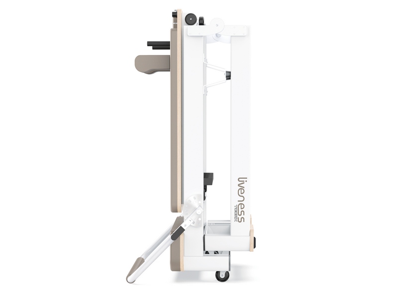 TELAIO: alluminio CARRELLO: 8 ruote in PU con cuscinetti a sfera per uno scorrimento fluido e silenzioso. Dimensioni 600x996 mm. Lunghezza escursione: 798 mm. Altezza da terra: 294 mm FOOTBAR: sistema di regolazione con leve a molla esterna al telaio garantisce un accesso sicuro e immediato. Regolazione angolare su 9 livelli MOLLE: 6 molle in acciaio temprato ad alto tenore di carbonio con filo di provenienza tedesca di alta qualità per un uso intensivo (2x strong, 2x medium, 2x light) COVER PEDANA ANTISCIVOLO INCERNIERATA: permette di accedere alle molle in modo ancora più agevole e rapido • Montante: fissaggio puleggia regolabile su 3 livelli • Ruote di trasporto: PU ad alta resistenza • Poggiatesta: regolabile su 3 livelli • Schienale, poggiatesta, poggia spalle e cover pedana anti scivolo: ergonomici • Rivestimento in microfibra a 3 strati effetto pelle, lavabile e resistente all’usura • Imbottitura in spugna ad alta densità • Dotazioni: cinghie regolabili a doppio anello, maniglie/ganci per cinghia, pedana anti scivolo, foot strap • Accessori inclusi: box, jumpboard