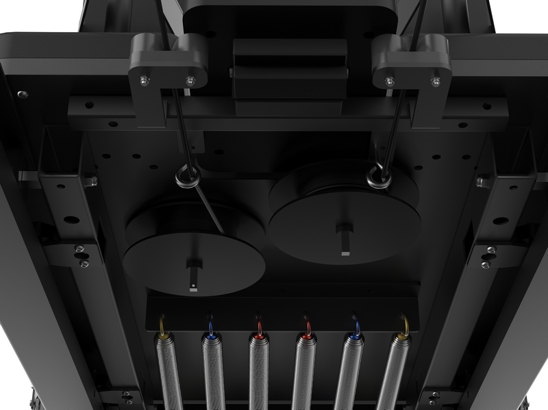 TELAIO: alluminio CARRELLO: 8 ruote in PU con cuscinetti a sfera per uno scorrimento fluido e silenzioso. Dimensioni 600x944 mm. Lunghezza escursione: 1055 mm. Altezza da terra: 412 mm FOOTBAR: sistema di regolazione con leve a molla esterna al telaio garantisce un accesso sicuro e immediato. Regolazione angolare su 9 livelli MOLLE: 6 molle in acciaio temprato ad alto tenore di carbonio con filo di provenienza tedesca di alta qualità per un uso intensivo (2x strong, 2x medium, 2x light) SISTEMA DI RIAVVOLGIMENTO DEI CAVI: automatico per un utilizzo facile e veloce COVER PEDANA ANTISCIVOLO INCERNIERATA: permette di accedere alle molle in modo ancora più agevole e rapido