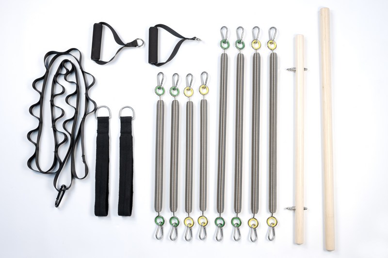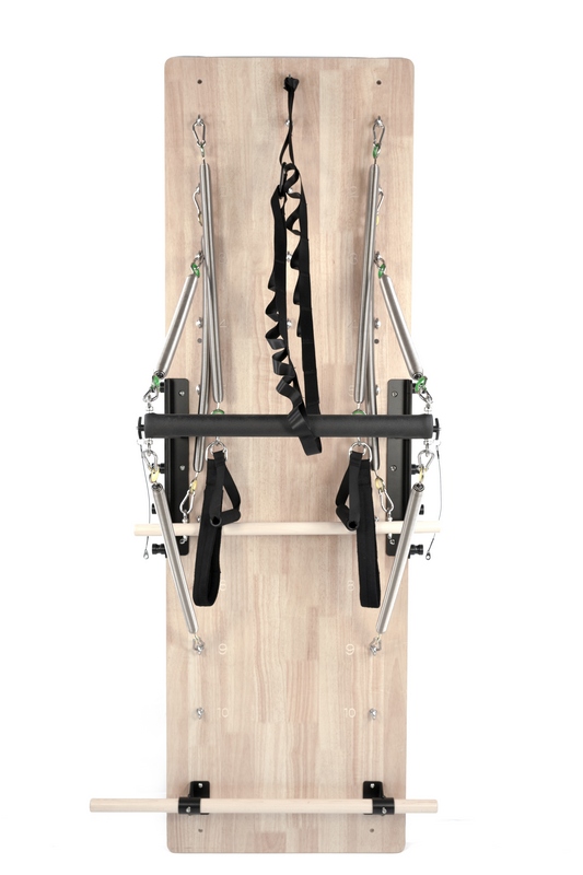 STRUTTURA: legno di quercia naturale/alluminio MOLLE: 8 molle in acciaio temprato ad alto tenore di carbonio per un uso intensivo (4x standard, 4x lunghe) PUNTI DI ATTACCO MOLLE: n° 23 per un’infinita varietà di esercizi. ROLL DOWN BAR: in acero canadese PUSH-TROUGH BAR: regolabile in altezza su 5 livelli. Quick sliding system: sistema di riposizionamento rapido e silenzioso SAFETY STRAP: con moschettone ACCESSORI: impugnature ergonomiche, anelli caviglie SPACE SAVER: la tavola in legno deve essere fissata al muro. tasselli non inclusi DIMENSIONI: 1830x600x800 mm PESO: 30 kg